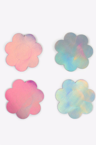 - 1 paire de cache-tétons argentés et 1 paire de cache-tétons roses